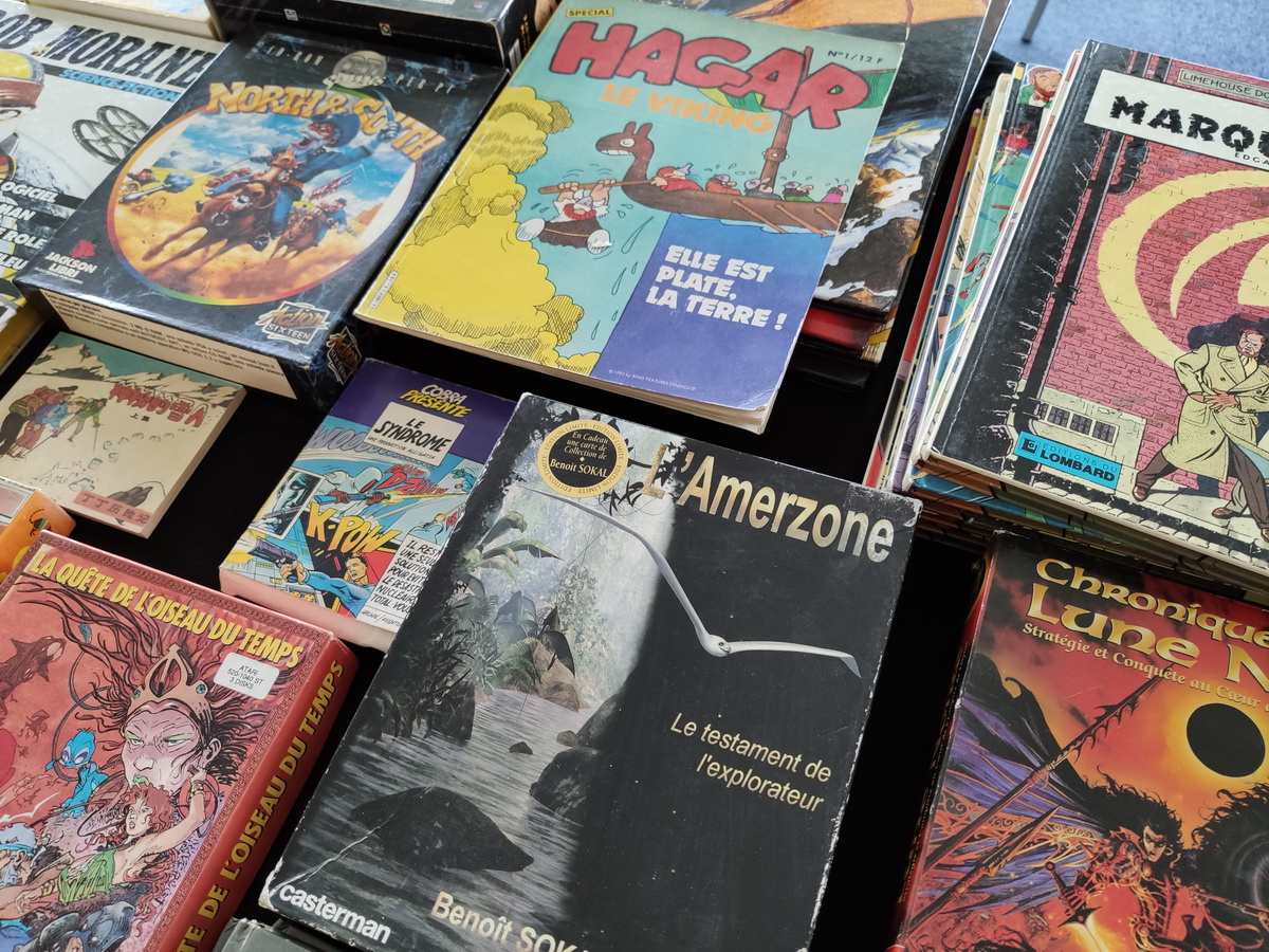 Alors que les premiers studios de création de jeux vidéo florissaient dans les années 80 (CobraSoft, UbiSoft), des amitiés existaient déjà entre les fondateurs de ceux-ci et les dessinateurs de BD, qu'ils soient français, belges ou d'ailleurs. C'est donc tout naturellement que de nombreuses bandes dessinées se sont vues être adaptées en jeux vidéo et parfois même sous des formes innovantes pour l'époque. Au-delà des grandes licences connues de tous comme "Les Schtroumpfs", "Astérix" ou "Lucky Luke", il est nécessaire de faire un travail de rétrospective et creuser un peu le sujet pour découvrir certaines adaptations plus adultes comme "Les passagers du vent", "XIII", "Blake & Mortimer" ou "Les chroniques de la lune noire". Au travers d'une douzaine de jeux jouables sur des machines vintages (consoles et ordinateurs), David BAGEL nous présente sa collection de jeux vidéo qui raviront petits et grands !