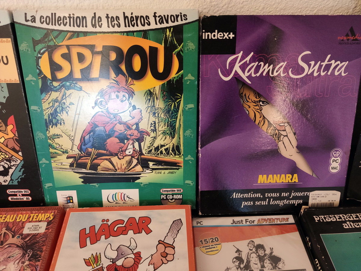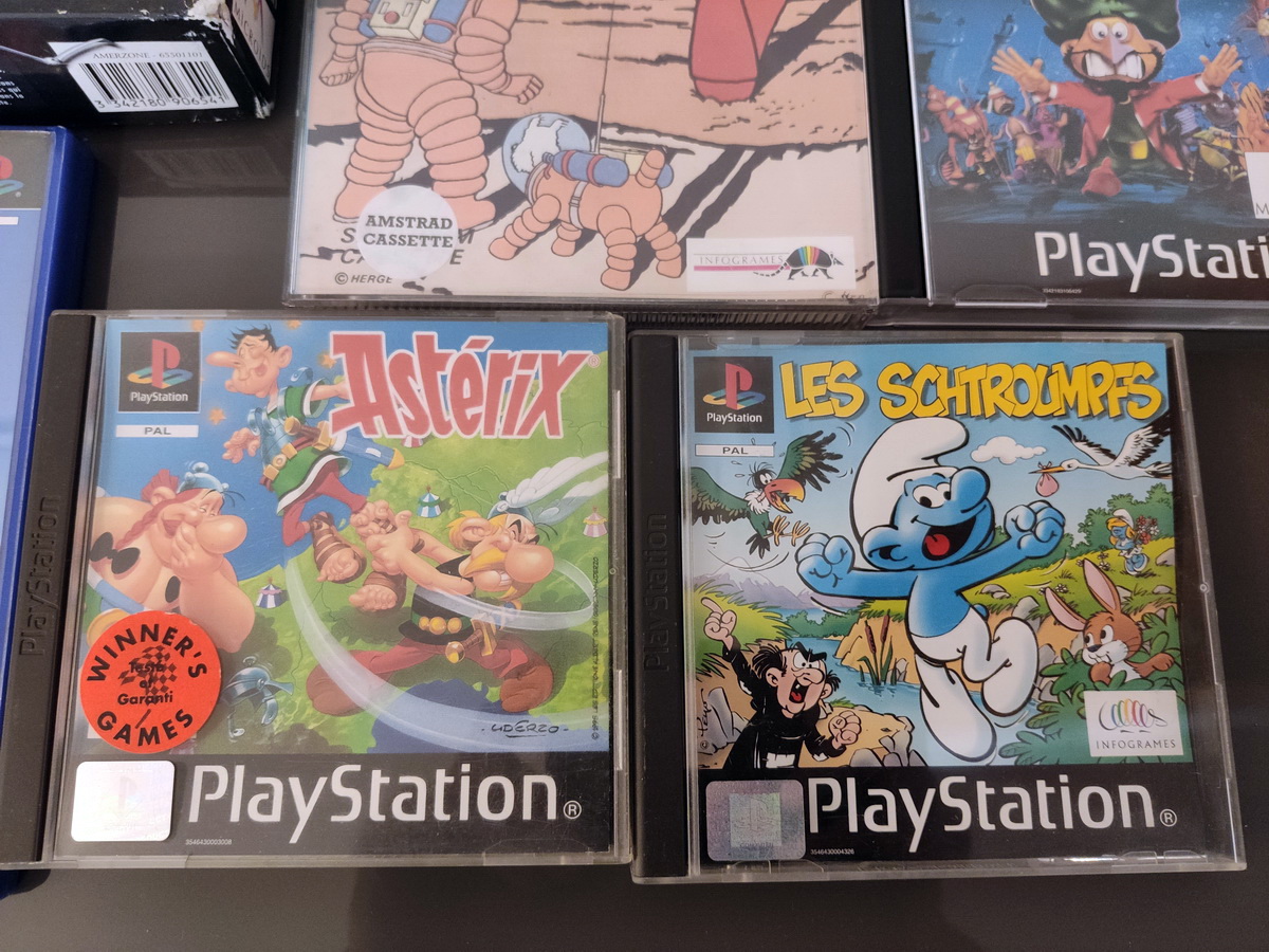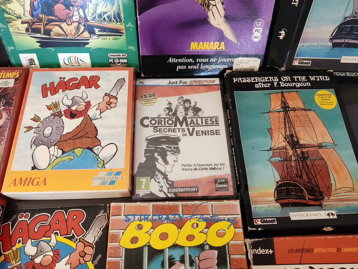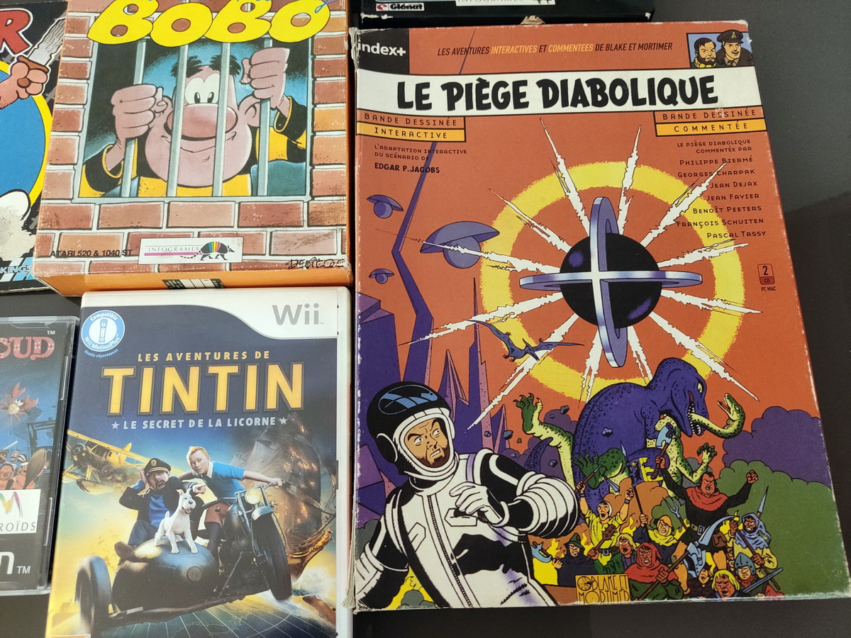 Détail des jeux: Nord & Sud, Bobo, Les Passagers Du Vent, Les Chroniques De La Lune Noire, Xiii, Tintin Au Tibet, Marsupilami, La Quête De L'oiseau Du Temps, Les Schtroumpfs, Tintin Objectif Lune, Largo Winch, Astérix, Spirou, Hagar du Nord, Corto Maltese : Secrets De Venise, Bob Morane : Science-Fiction, Les Aventures De Tintin : Le Secret De La Licorne , Iznogoud, Astérix Et Obélix, Lucky Luke, L'Amerzone, Blake Et Mortimer : Piège Diabolique, Blake & Mortimer : La Marque Jaune...