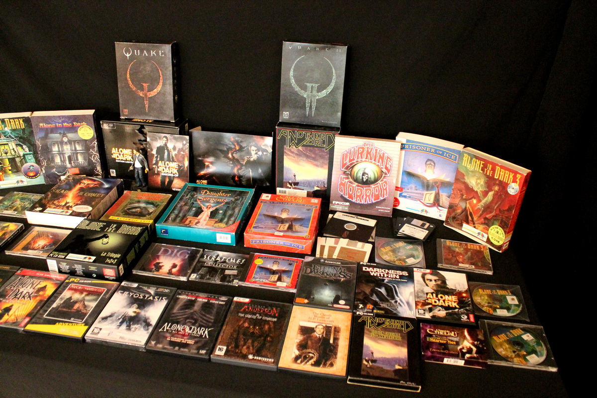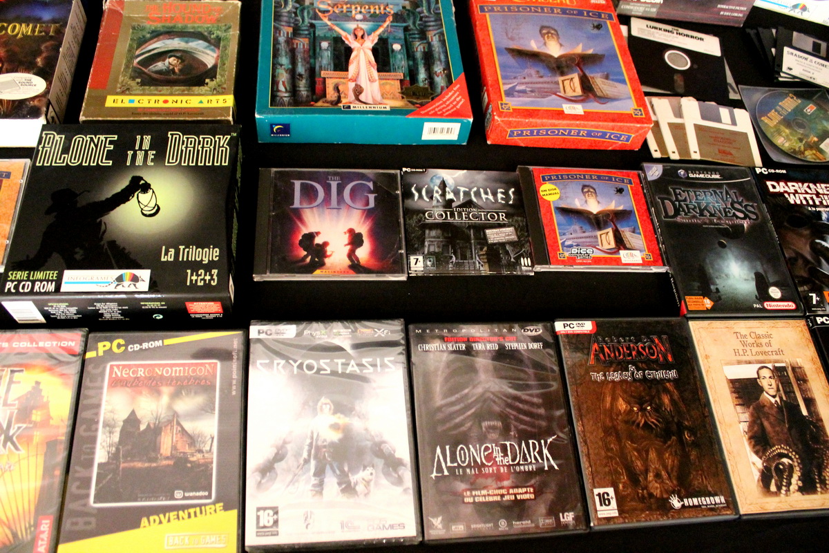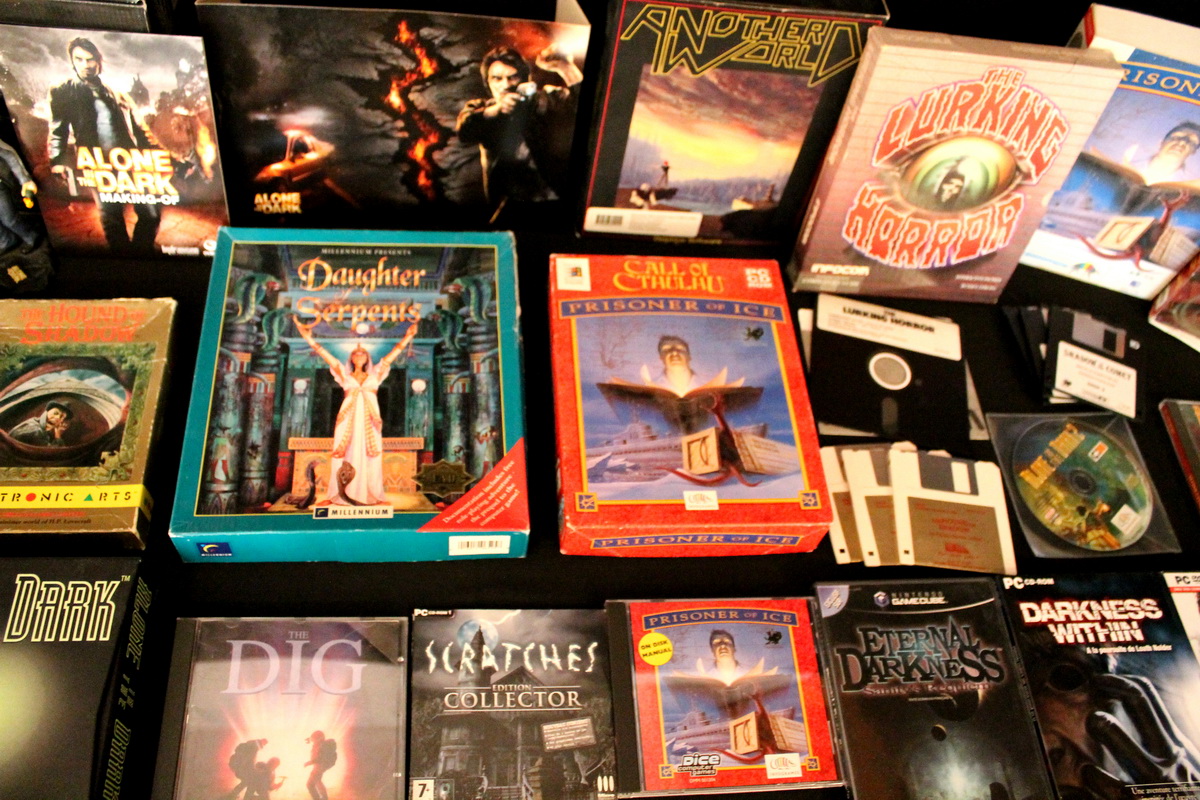 Environ une quinzaine de jeux vidéo inspirés par l’univers de Lovecraft couvrant une trentaine d’années d’évolution du jeu vidéo, de l’aventure en mode texte des années 80 (véritable lien avec le monde de la littérature) au « first person shooter » des années 2010, seront exposés et jouables sur divers ordinateurs et consoles (PC, Mac, Commodore 64, Nintendo GameCube, etc…), bien sûr accompagnés de leurs boîtes, posters, magazines, livres, bandes dessinées et autres produits dérivés.
