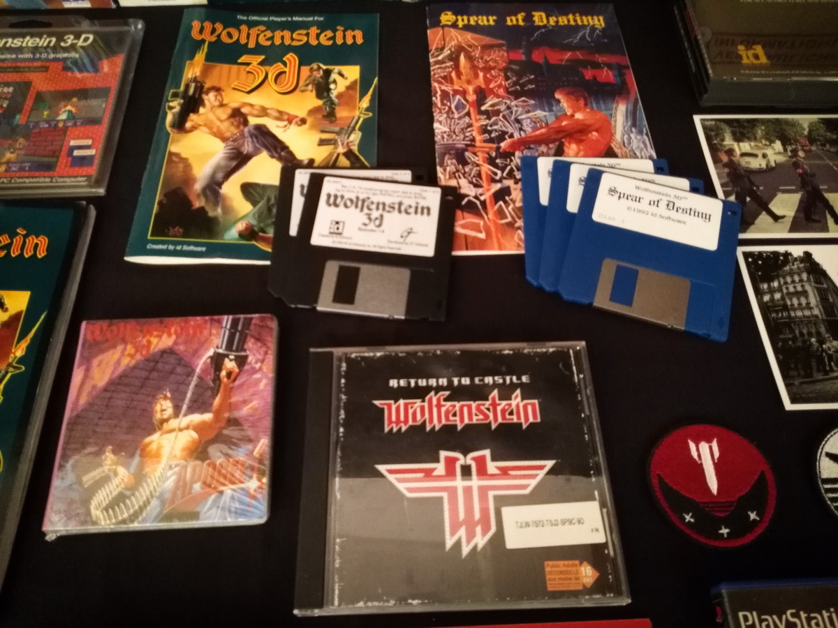 Environs 50 boîtes de jeux (versions USA, EUR, JAP) Goodies, posters, magazines… LAN pour 4 joueurs : 4 laptops HP Wolfenstein jouable sur : Atari Jaguar Super Nintendo Sony PS3 PC 486 DX2-50 Version « spilt-screen » à 2 PC récent pour Wolfenstein The new order, The old blood, Wolfenstein II : The new colossus