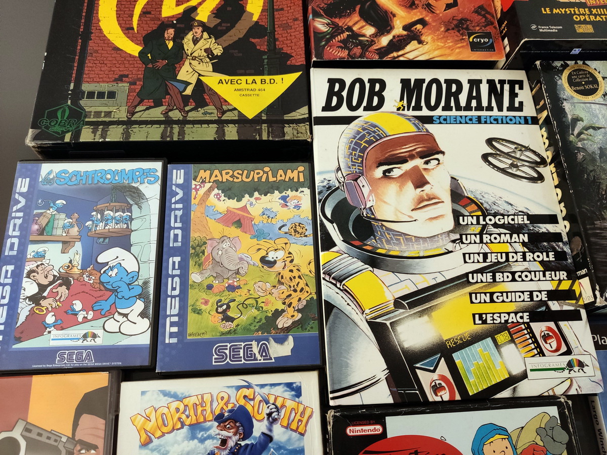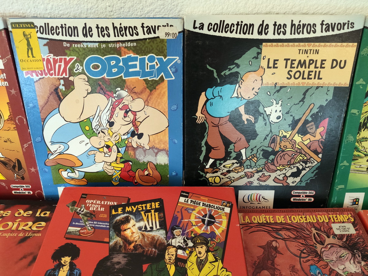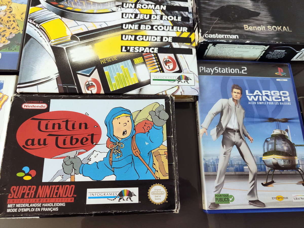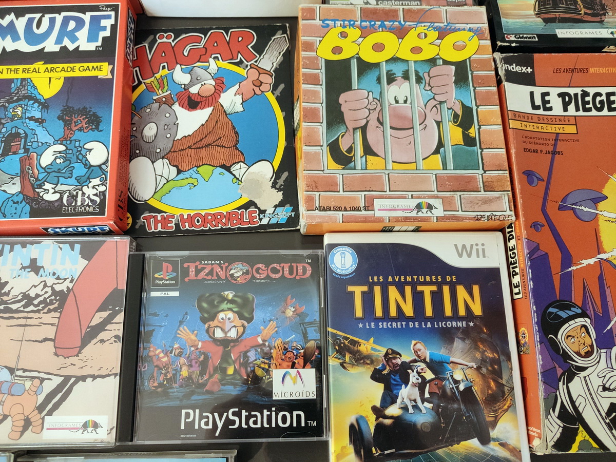 Détail des jeux: Nord & Sud, Bobo, Les Passagers Du Vent, Les Chroniques De La Lune Noire, Xiii, Tintin Au Tibet, Marsupilami, La Quête De L'oiseau Du Temps, Les Schtroumpfs, Tintin Objectif Lune, Largo Winch, Astérix, Spirou, Hagar du Nord, Corto Maltese : Secrets De Venise, Bob Morane : Science-Fiction, Les Aventures De Tintin : Le Secret De La Licorne , Iznogoud, Astérix Et Obélix, Lucky Luke, L'Amerzone, Blake Et Mortimer : Piège Diabolique, Blake & Mortimer : La Marque Jaune...