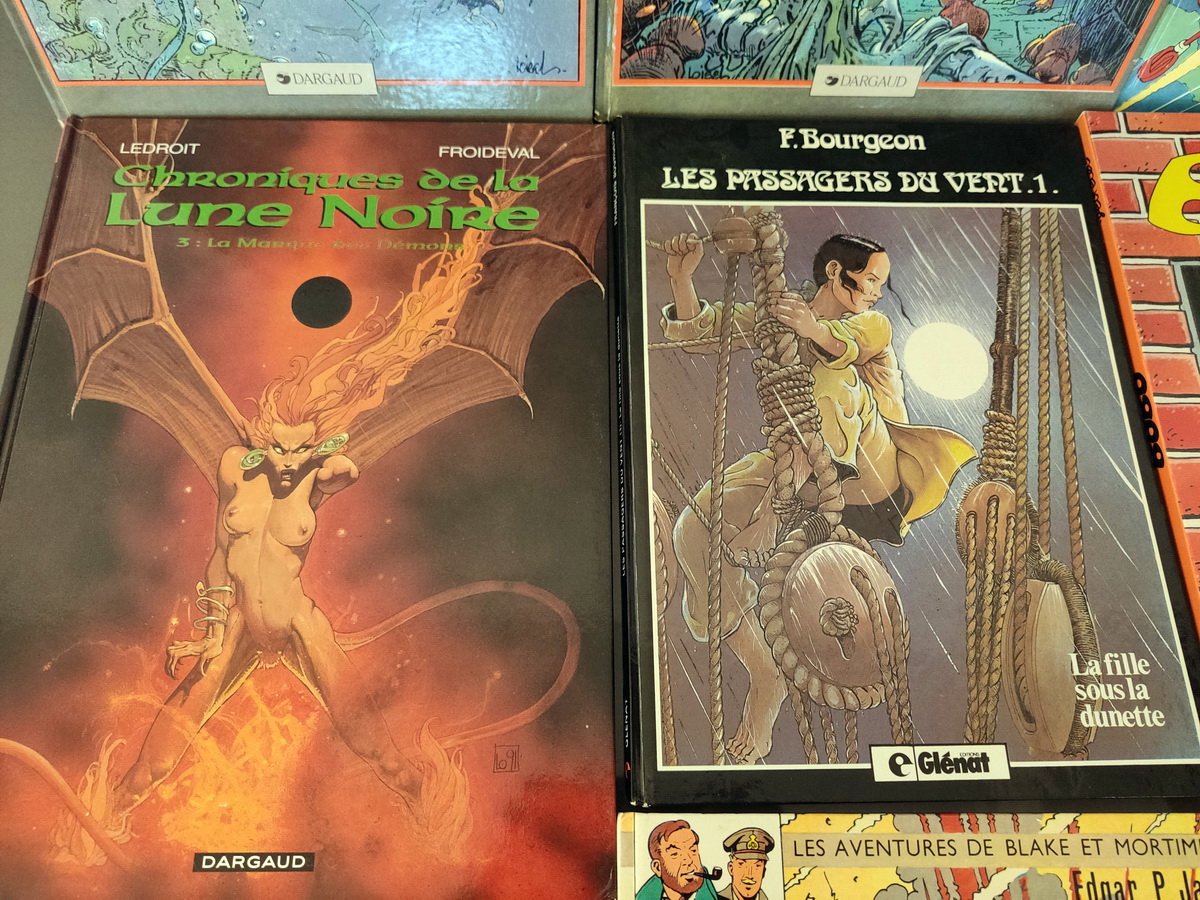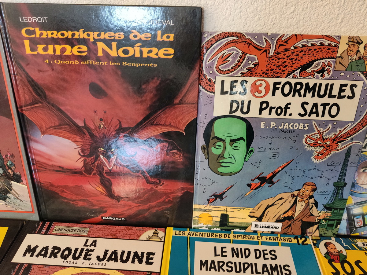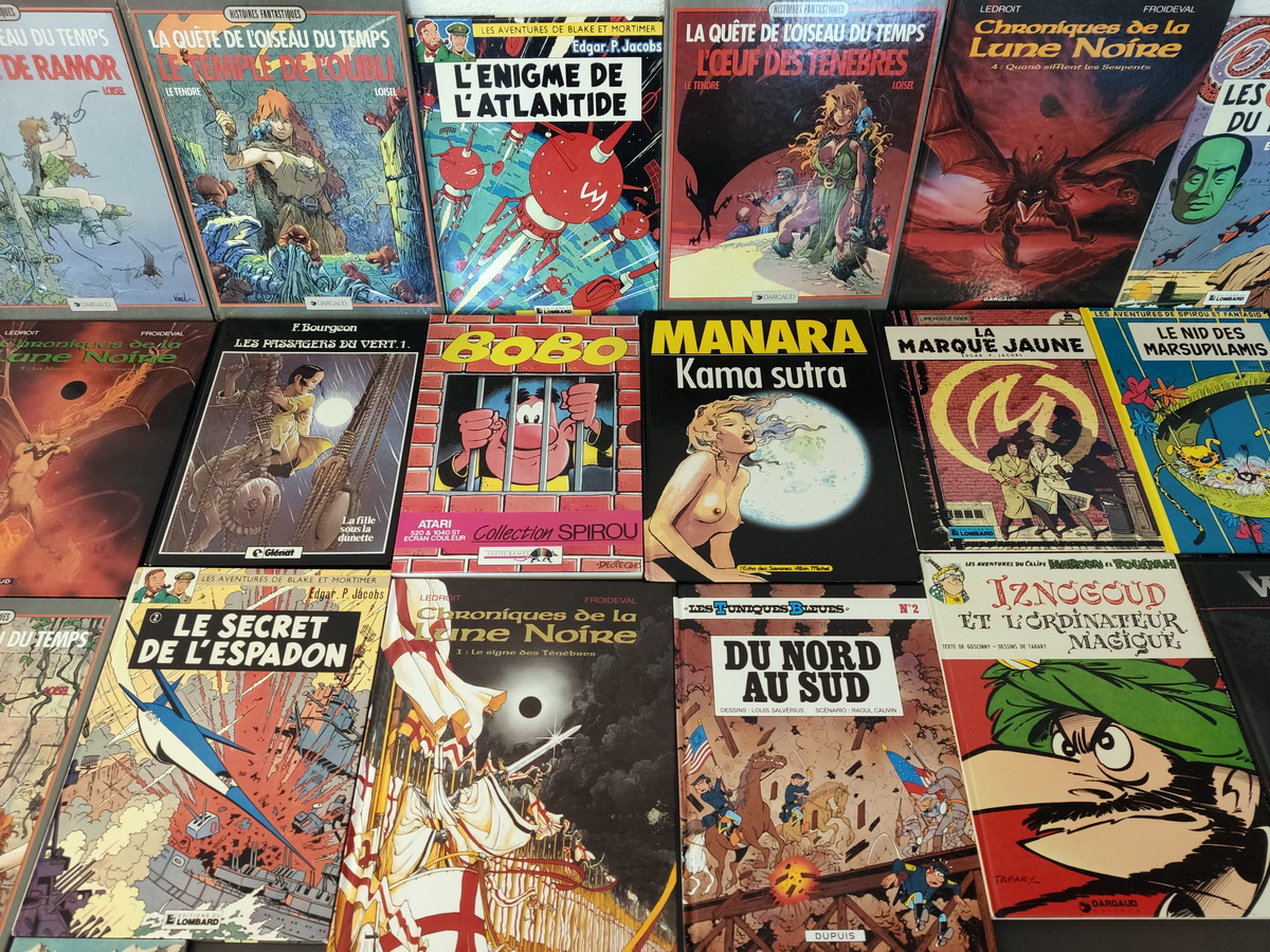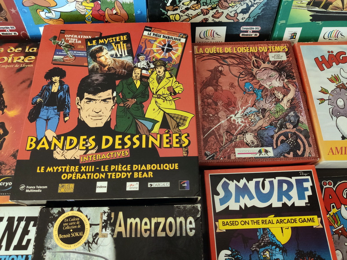 Détail des jeux: Nord & Sud, Bobo, Les Passagers Du Vent, Les Chroniques De La Lune Noire, Xiii, Tintin Au Tibet, Marsupilami, La Quête De L'oiseau Du Temps, Les Schtroumpfs, Tintin Objectif Lune, Largo Winch, Astérix, Spirou, Hagar du Nord, Corto Maltese : Secrets De Venise, Bob Morane : Science-Fiction, Les Aventures De Tintin : Le Secret De La Licorne , Iznogoud, Astérix Et Obélix, Lucky Luke, L'Amerzone, Blake Et Mortimer : Piège Diabolique, Blake & Mortimer : La Marque Jaune...