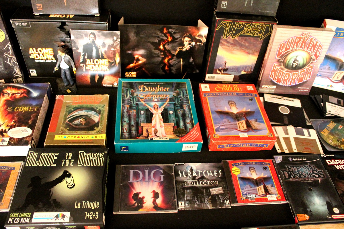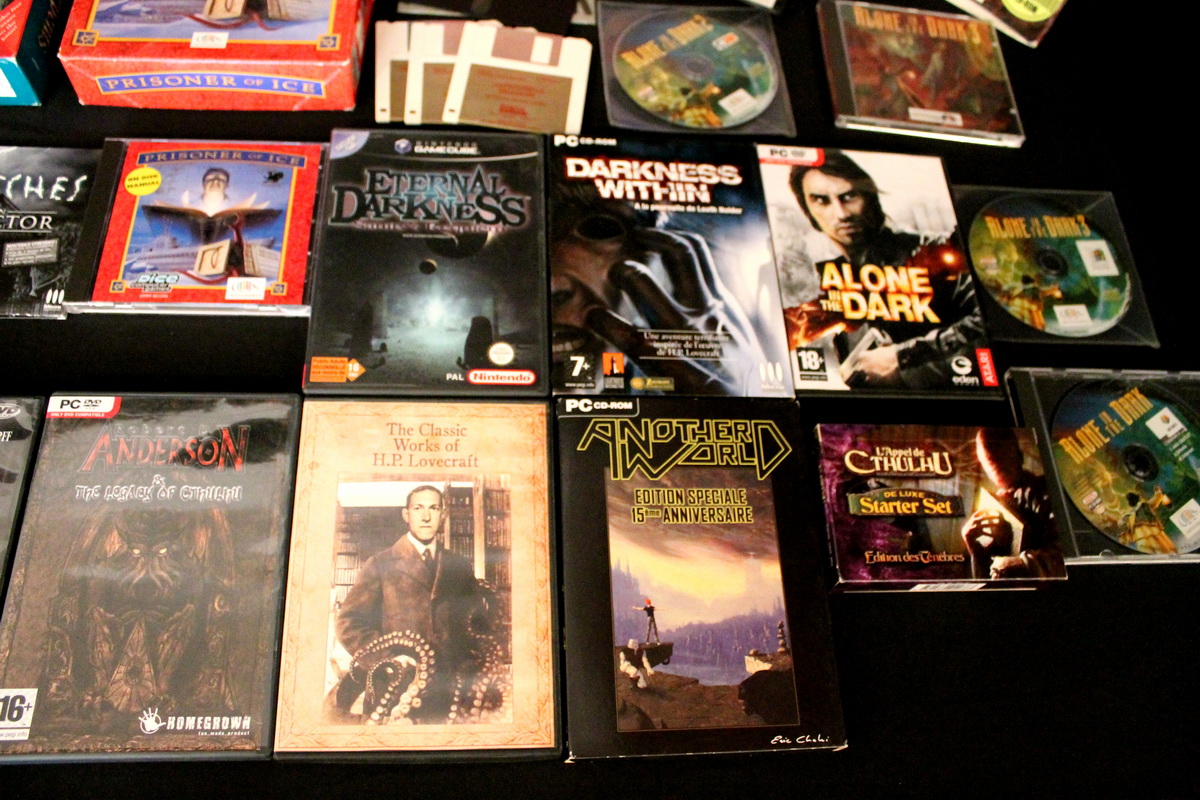 Environ une quinzaine de jeux vidéo inspirés par l’univers de Lovecraft couvrant une trentaine d’années d’évolution du jeu vidéo, de l’aventure en mode texte des années 80 (véritable lien avec le monde de la littérature) au « first person shooter » des années 2010, seront exposés et jouables sur divers ordinateurs et consoles (PC, Mac, Commodore 64, Nintendo GameCube, etc…), bien sûr accompagnés de leurs boîtes, posters, magazines, livres, bandes dessinées et autres produits dérivés.